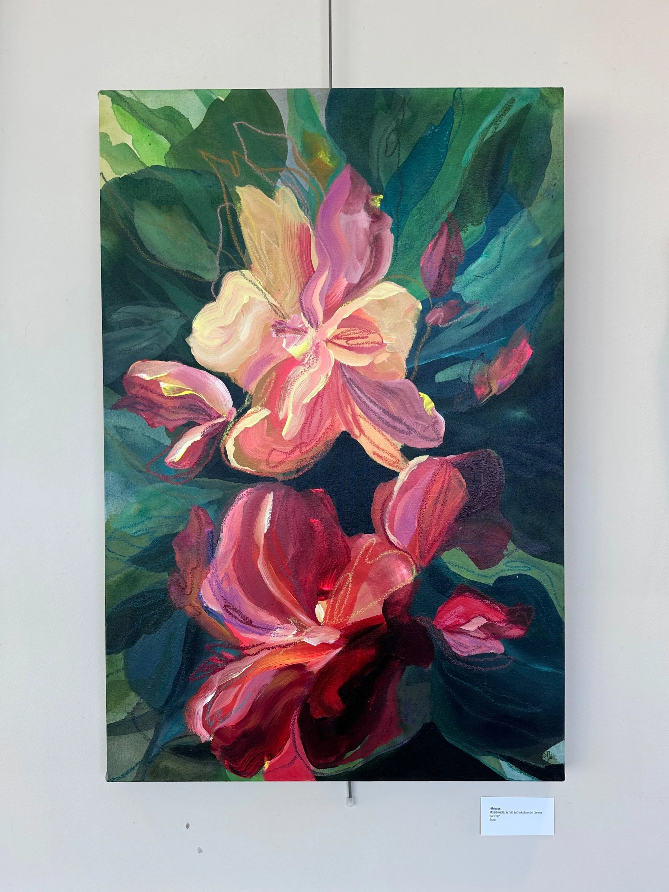 Her compositions are inspired by the wildness of the woods, the warmth of her greenhouse, the colors inside her kitchen, and the shapes found in local parks. These familiar places fuel the emotion and movement in each piece. She works in layered, expressive strokes—letting feeling lead and color follow.